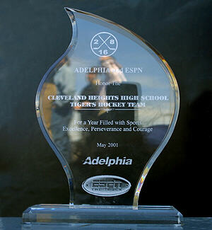 On May 5th, ESPN and Adelphia Media Services presented the Tigers with an award in recognition of the team's perseverance and courage through a difficult year. The ceremony took place during the Cleveland visit of ESPN The Truck, ESPN's 18-wheel mobile extravaganza. |