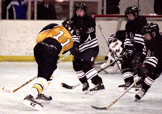 shoots through three defenders.