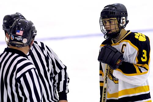 confers withs the refs.