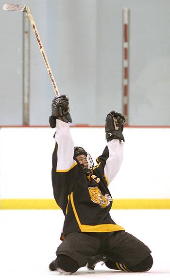 celebrates after scoring against Mentor.