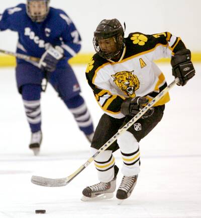 carries the puck against Bay.