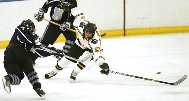 tries to disrupt a Hudson shot.