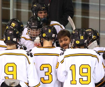 addresses the team during a time out.