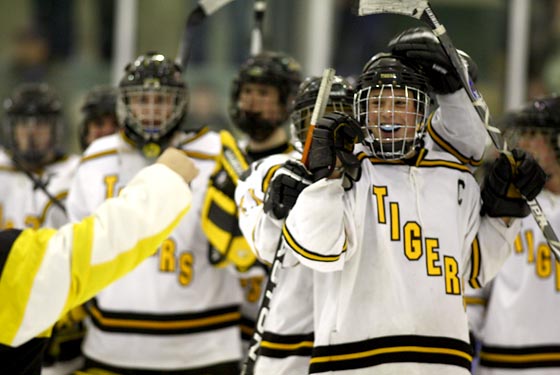 and the Tigers celebrate the win over Benedictine.