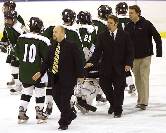 The coaching staff shakes hands after the win against Nordonia.