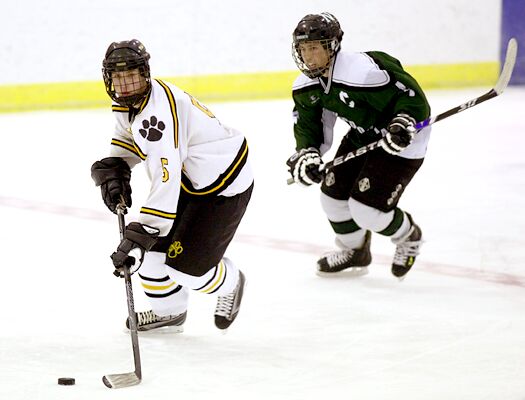 rushes over center ice.