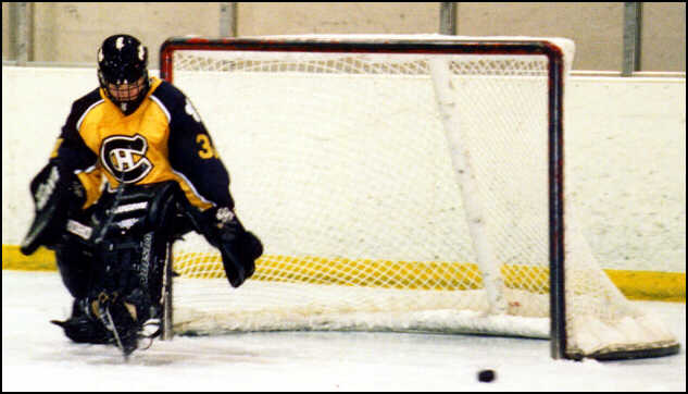 makes a kick-save during his