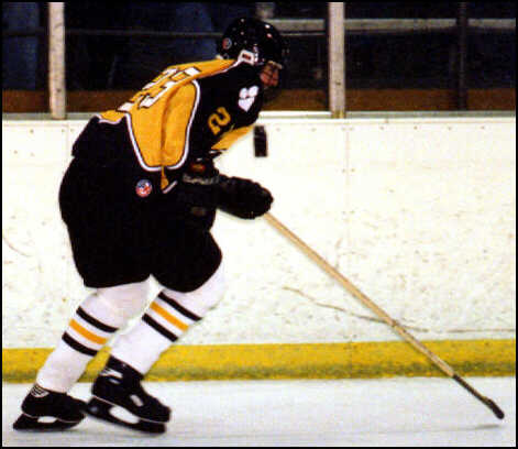 skates along the boards.