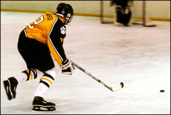 chases down a loose puck.