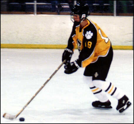 takes control of a loose puck.
