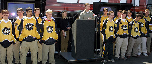 On May 5th, ESPN and Adelphia Media Services presented the Tigers with an award in recognition of the team's perseverance and courage through a difficult year. The ceremony took place during the Cleveland visit of ESPN The Truck, ESPN's 18-wheel mobile extravaganza. |