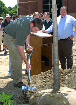 | Mayor Edward J. Kelley | Coach Kirk Guenther helps with the planting. |