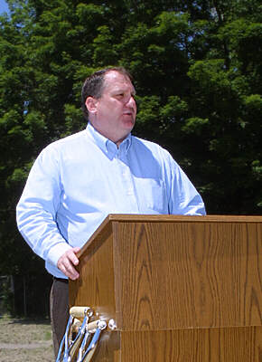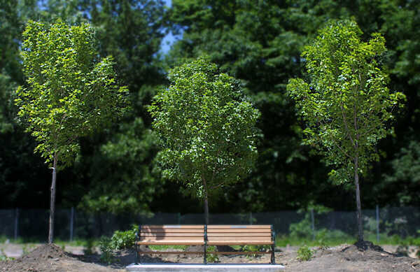 The city of Cleveland Heights remembered Kyle, Brendon and Milton with a ceremony on the afternoon of June 9th. Three maple trees were planted and a park bench was dedicated behind the site of the new ice rink. Cleveland Heights Mayor Edward J. Kelley, Tigers' Head Coach Kirk Guenther, and Brendon's father Bill Benner each spoke briefly, then all attendees were invited to help plant the trees. |