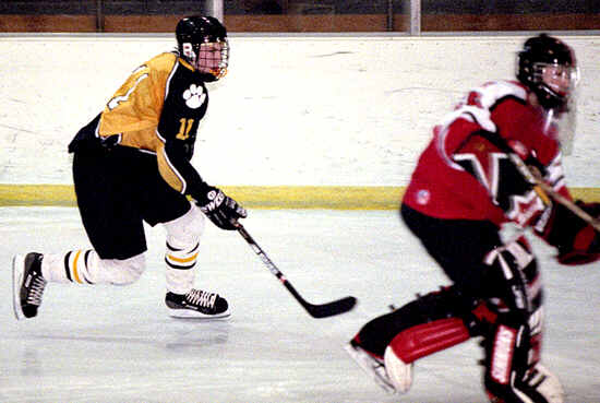 chases down Shaker's goalie.