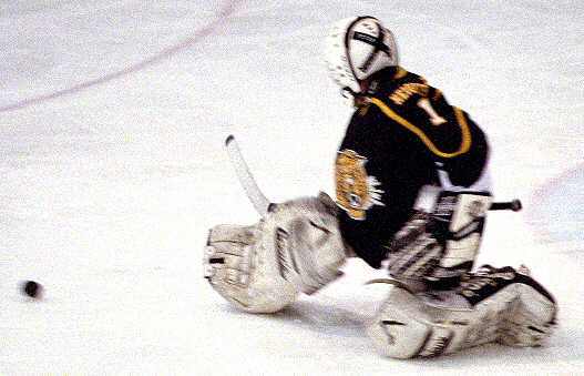 makes one of 35 saves in his win over St. Ignatius.