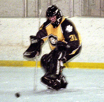comes up with a kick save.