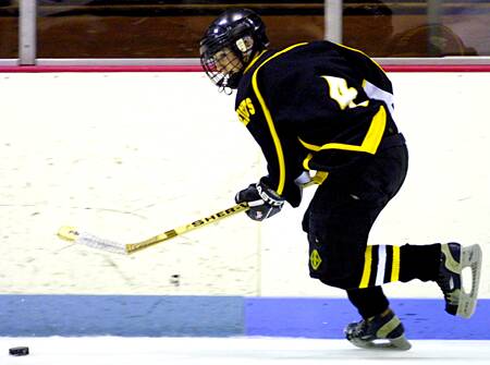 speeds away with the puck.