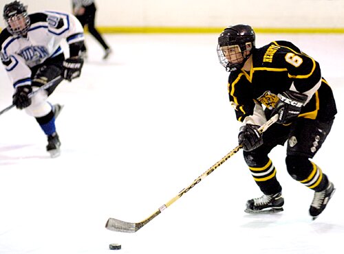 carries the puck against Hudson.