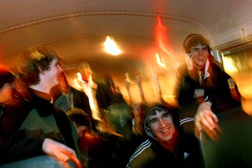 The team arrives home after an hour-long bus ride from Hudson.