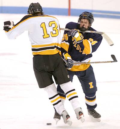 tries to squeeze past a St. Ignatius defender.