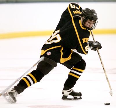stickhandles around a defender.