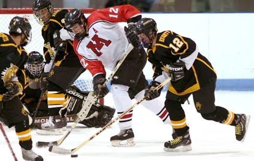 pulls the puck out of trouble.