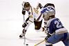 | Jason Kelce knocks in a loose puck for a goal against Gilmour. |