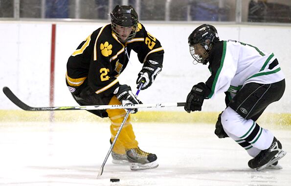 challenges a Medina defenseman.