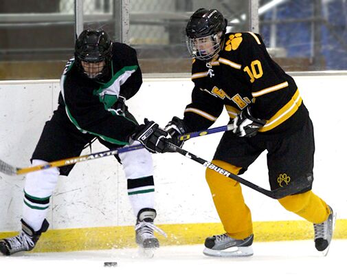 battles for the puck.