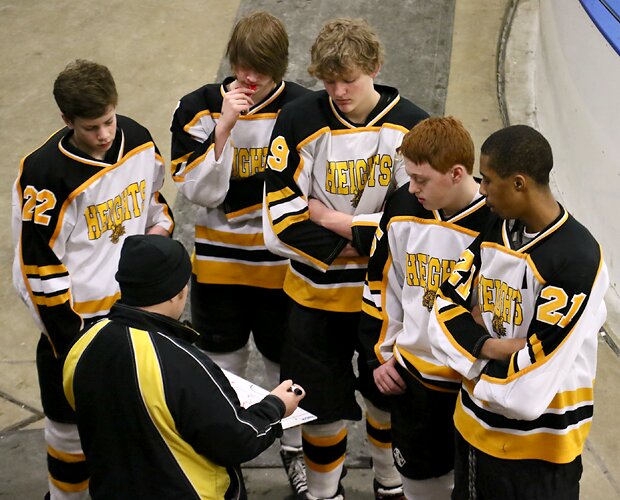 talks strategy with the defensemen