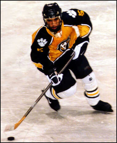 advances the puck against Trinity.